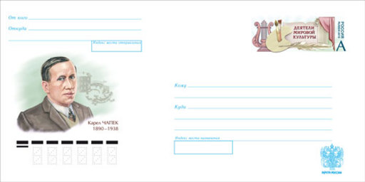 名称:1月13日俄罗斯发行卡雷尔·恰佩克纪念邮资封
