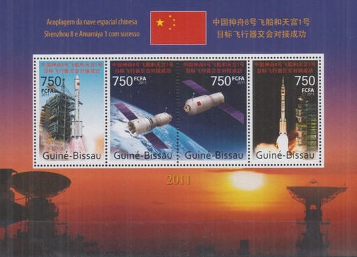 名称:几内亚比绍2011年发行的神舟八号与天宫一号成功对接小全张