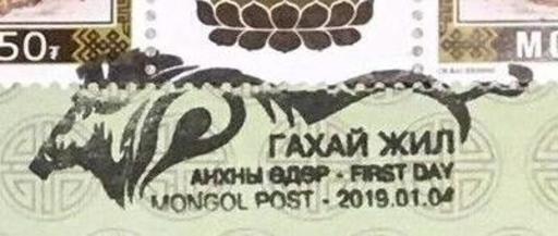 蒙古1月4日猪年邮票纪念邮戳