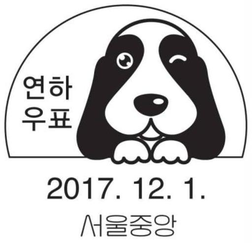 名称:韩国12月1日眨眼的小狗纪念邮戳