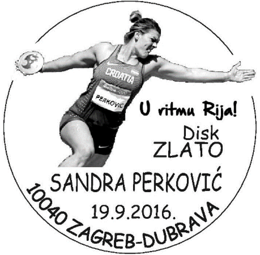 名称:克罗地亚9月19日启用2016里约奥运会桑德拉·佩尔科维奇获得女子铁饼冠军纪念邮戳
