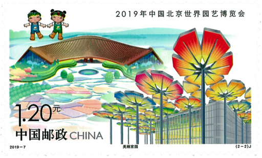 2019年中国北京世界园艺博览会于2019年4月29日至10月7日在北京举办,是近十年在中国举办的级别最高、规模最大的一次专业类世博会。北京世园会园区位于延庆区八达岭长城脚下,因而有“长城脚下的世园会”之称。以“绿色生活美丽家园”为主题的本次世园会,是弘扬绿色发展理念、推动经济发展方式和居民生活方式转变的重要契机,也是建设美丽中国的生动实践。绿色生活画面以在青山间蜿蜒的长城、北京市市花-月季以及本次世园会的会徽-长城之花为主要元素,寓意园艺源于自然,倡导尊重自然、融入自然的理念,突出了“中国风格”和“北京品牌”。美丽家园画面以本次世园会国际馆、中国馆以及吉祥物“小萌芽”“小萌花”为主要元素、整体画面生机盎然、朝气蓬勃,启示人们树立绿色、低碳、环保的生产生活理念,共同建设多姿多彩的美丽家园。
