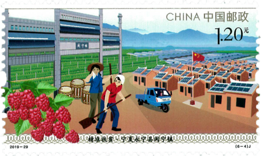 “精准扶贫”的重要思想最早是在2013年11月,习近平到湖南湘西考察时首次作出了“实事求是、因地制宜、分类指导、精准扶贫”的重要指示。2014年1月,中办详细规制了精准扶贫工作模式的顶层设计,推动了“精准扶贫”思想落地。2014年3月,习近平参加两会代表团审议时强调,要实施精准扶贫,瞄准扶贫对象,进行重点施策。进一步阐释了精准扶贫理念。2015年1月,习近平总书记新年首个调研地点选择了云南,总书记强调坚决打好扶贫开发攻坚战,加快民族地区经济社会发展。5个月后,总书记来到与云南毗邻的贵州省,强调要科学谋划好“十三五”时期扶贫开发工作,确保贫困人口到2020年如期脱贫,并提出扶贫开发“贵在精准,重在精准,成败之举在于精准”,“精准扶贫”成为各界热议的关键词。本套6枚邮票主要表现内容为大步迈向小康社会、福建宁德市赤溪村、湖南花垣县十八洞村、宁夏永宁县闽宁镇、河南兰考县、江西井冈山市,体现扶贫工作重大里程碑意义,展现精准扶贫工作重大成就。