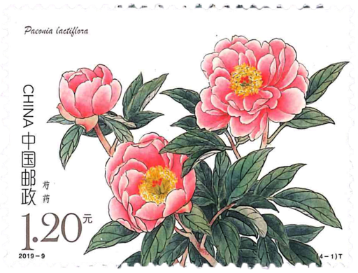 芍药,芍药科芍药属,多年生草本,花大而美丽,是重要的观赏植物与药用植物。芍药属植物全世界约有30种,主要分布于欧亚大陆温带地区,少数产北美洲。中国有15种,分布于西南、西北、华中、华北和东北。本套邮票所展示的芍药(Paeonialactiflora)、川赤芍(Paeoniaveitchii)、草芍药(Paeoniaobovata)、美丽芍药(Paeoniamairei,)四个品种,我国均有分布,花期在5月至6月。