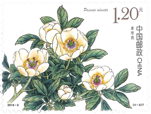 芍药,芍药科芍药属,多年生草本,花大而美丽,是重要的观赏植物与药用植物。芍药属植物全世界约有30种,主要分布于欧亚大陆温带地区,少数产北美洲。中国有15种,分布于西南、西北、华中、华北和东北。本套邮票所展示的芍药(Paeonialactiflora)、川赤芍(Paeoniaveitchii)、草芍药(Paeoniaobovata)、美丽芍药(Paeoniamairei,)四个品种,我国均有分布,花期在5月至6月。
