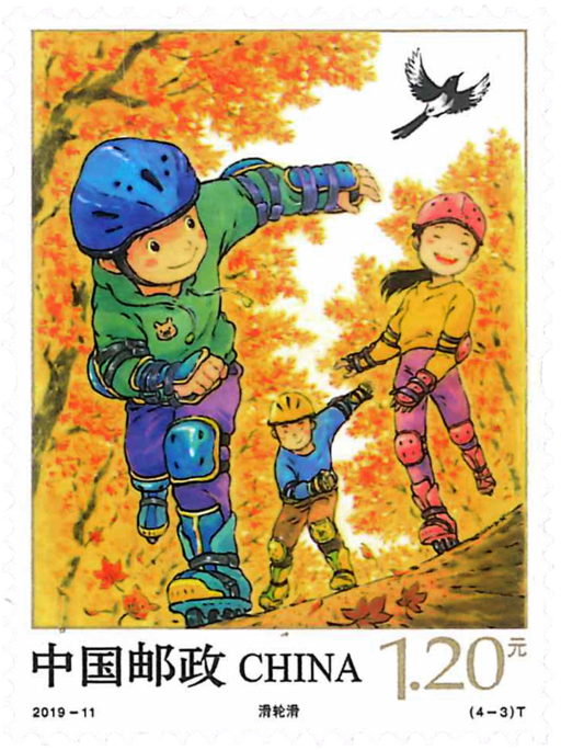 游戏是儿童的天性释放,是童年最美好的回忆。儿童游戏形式多样,本套邮票展现了拼拼图、堆沙堡、滑轮滑、搭积木四种广受现代儿童喜爱的游戏。其中既有益智类游戏,又有活动类游戏。幸福快乐的童年,往往是在与小伙伴的游戏中度过的。无穷无尽的想象空间、诉说不完的童真童趣、随时随地迸发而出的创造力,恰恰蕴藉在游戏当中。