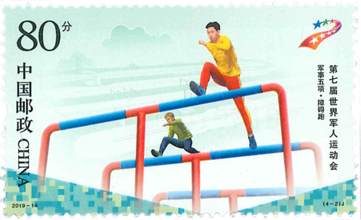 第七届世界军人运动会于2019年10月18日至27日在我国湖北省武汉市举行。世界军人运动会是国际军事体育理事会主办的全球军人最高规格的大型综合性运动会,被称为“军人的奥运会”,自1995年开始每4年举行一次。本届运动会的主题口号为“创军人荣耀筑世界和平”,表达了东道主中国和世界各国军人运动员“共享友谊、同筑和平”的共同心声。本套邮票展现了田径.标枪、军事五项.障碍跑、海军五项.航海技术、跳伞.四人造型的精彩瞬间。