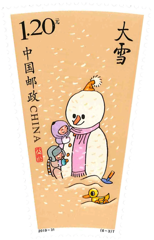 二十四节气是我国古代先民认知天象、物候、时令和大自然变化规律的知识体系与社会实践。2016年,二十四节气被列入联合国教科文组织人类非物质文化遗产代表作名录。本套邮票是自2015年开始发行的二十四节气系列邮票第四组,表现冬天的六个节气。经过了春天的草长莺飞、桃红柳绿,夏天的阳光灿烂、浓荫匝地,秋天的金风送爽、硕果累累,便迎来了飞雪凝霜、寒风刺骨的冬天。这六个节气分别是:立冬、小雪、大雪、冬至、小寒、大寒。