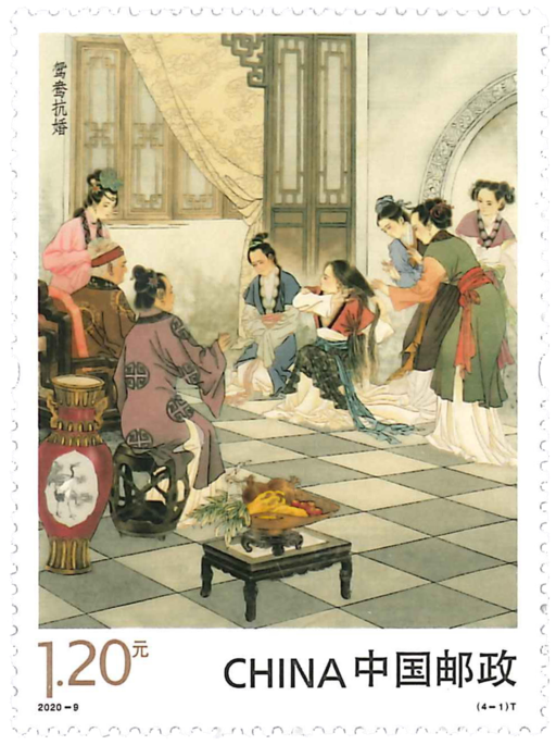 此套邮票是中国邮政自2014年发行的《中国古典文学名著——< 红楼梦>》系列邮票的第四组,描绘了小说第四十六回至第七十四回的五段故事场景。