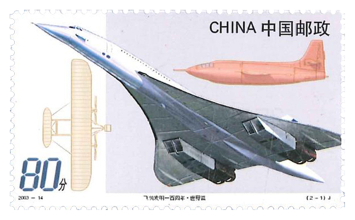 2003年,为纪念飞机发明100周年,国家邮政局发行两枚纪念邮票,分别为世界篇和中国篇。世界篇表现的三种机型是莱特兄弟的“飞行者一号”、世界上第一架超音速飞机美国的X-1、世界上第一架实用的超音速客机协和飞机。中国篇表现的是冯如设计制作并试飞成功的第一架飞机“冯如2号”、新中国航空工业自行研制并走向世界的喷气教练机K-8、新中国航空工业自主研制的歼击轰炸机飞豹。