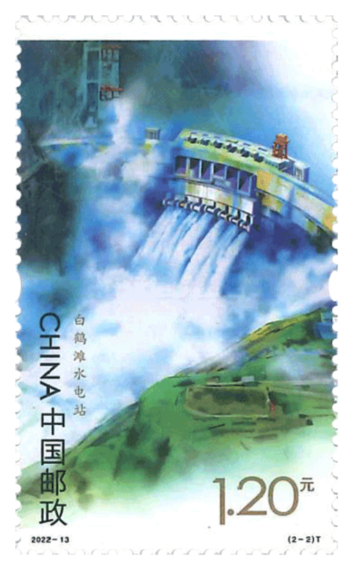 本套邮票展现了我国水电建设的最新成就。乌东德水电站位于云南省昆明市禄劝县和四川省凉山州会东县交界的金沙江干流上,是世界第七、中国第四大水电站, 2021年6月16日全部机组投产发电。白鹤滩水电站位于四川省凉山州宁南县和云南省昭通市巧家县交界的金沙江干流上,全面建成投产后将成为仅次于三峡水电站的世界第二大水电站。两座水电站将为我国经济社会绿色发展提供强劲动能。邮票采用横、竖两种票幅,以蓝绿色为主色调,通过对比展现大坝上游碧波鄰鄰的水面与下游出水时的磅礴气势,形成强烈的视觉冲击力。