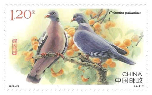 鸽是广受大众喜爱的鸟类之一,种类较多,有的种类与人类伴居已有几千年的历史,被视为和平、友谊、团结、圣洁的象征。本套邮票展现了四个种类的鸽子:岩鸽广泛分布于中国北部地区,是最为常见的野生鸽子;斑尾林鸽广泛分布于欧亚大陆北部的森林中,在我国仅分布于新疆西北部;雪鸽主要分布于青藏高原地区海拔2000-4000米的山谷、崖壁和草坡;斑林鸽主要分布在我国西南部地区,全身以鲜艳的紫色为主,配有灰白色的斑点。