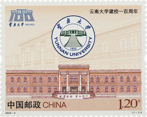 云南大学始创于1922年,1923年4月20日正式开学,是我国西南边疆最早建立的综合性大学之一,为国家“211工程”重点建设大学、“双一流”建设高校。一百年来,云南大学秉承“会泽百家、至公天下”的云大精神,扎根祖国西南边疆民族地区,培养了大批优秀人才,为促进民族团结进步、服务区域经济社会发展作出了积极贡献。邮票以雕刻线条呈现云南大学代表性建筑“会泽院”的厚重历史,灵活运用云南大学校徽和百年校庆标识,画面色调古朴、层次丰富。
