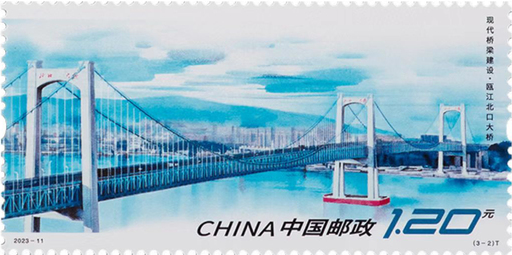 现代桥梁是一个国家科技水平和综合国力的重要体现。本套邮票分别展现了沪苏通长江公铁大桥、瓯江北口大桥、平南三桥,小型张表现了北盘江第一桥。这一座座现代化大桥将河湖山川连接起来,为百姓搭建起幸福的桥梁,向世界展示着“中国建造”的非凡实力。邮票图案采用水彩的艺术表现形式,运用干湿结合的创作手法,从俯视、平视等不同视角,描绘出四座大桥的外形特点和凌空飞架、穿江越岭的宏伟气势。