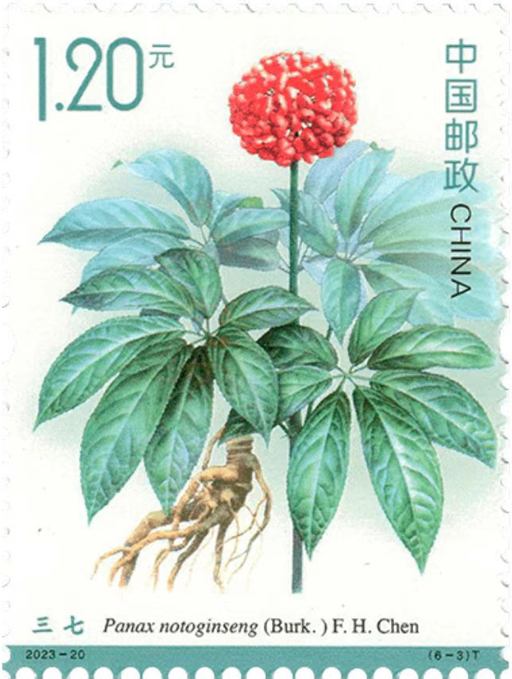 中医药学凝聚着深邃的哲学智慧和中华民族几千年的健康养生理念及其实践经验,是中国古代科学的瑰宝,也是打开中华文明宝库的钥匙。其在疾病预防、治疗、康复等方面的独特优势受到许多国家民众广泛认可。天然药物是中医药的特色之一。相传神农尝百草发现了天然药物,后人托其名著成《神农本草经》,为我国现存最早的中药经典著作。本套邮票分别表现了黄花蒿、忍冬、三七、白术、连翘、红花六种药用植物。