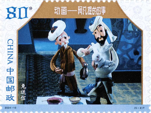 上海美术电影制片厂出品的《阿凡提的故事》是一部以传奇人物阿凡提为主角的木偶动画。这部动画由多个小故事组成,主题突出,人物性格鲜明,尤其是阿凡提机智幽默、能言善辩的形象活灵活现,受到广大观众的喜爱。本套邮票展现了《卖树荫》《兔送信》《神医》《宝驴》《种金子》五个故事,将不同故事场景置于舞台式的构形轮廓中,突出故事性和趣味性。邮票画面色彩丰富,层次分明,仿佛让人置身于动画的奇妙世界中。