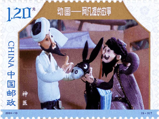 上海美术电影制片厂出品的《阿凡提的故事》是一部以传奇人物阿凡提为主角的木偶动画。这部动画由多个小故事组成,主题突出,人物性格鲜明,尤其是阿凡提机智幽默、能言善辩的形象活灵活现,受到广大观众的喜爱。本套邮票展现了《卖树荫》《兔送信》《神医》《宝驴》《种金子》五个故事,将不同故事场景置于舞台式的构形轮廓中,突出故事性和趣味性。邮票画面色彩丰富,层次分明,仿佛让人置身于动画的奇妙世界中。