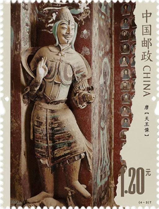 莫高窟俗称“千佛洞”,位于甘肃省敦煌市东南25千米处鸣沙山东麓、宕泉河西岸的崖壁上,是世界上现存规模最大、历史延续最悠久、内容最丰富、艺术最精美的佛教艺术遗存。本套邮票以现代设计构成形式表达传统的中国文化内核,邮票图案充分展现出塑像拙朴厚重、恢宏古雅的肌理和形态,小型张则重点表现了三龛殿堂窟的窟形特点。设计者打破边框限制,巧妙利用破损、修补所形成的自然形态,留出画面空间,刻画出莫高窟所经历的磨难与沧桑。