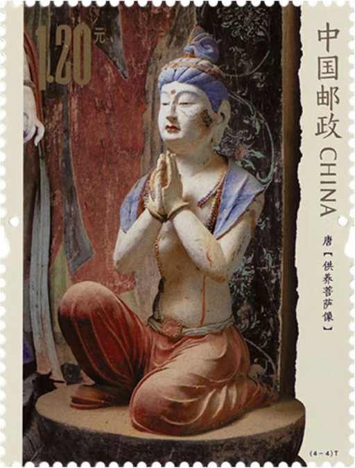 莫高窟俗称“千佛洞”,位于甘肃省敦煌市东南25千米处鸣沙山东麓、宕泉河西岸的崖壁上,是世界上现存规模最大、历史延续最悠久、内容最丰富、艺术最精美的佛教艺术遗存。本套邮票以现代设计构成形式表达传统的中国文化内核,邮票图案充分展现出塑像拙朴厚重、恢宏古雅的肌理和形态,小型张则重点表现了三龛殿堂窟的窟形特点。设计者打破边框限制,巧妙利用破损、修补所形成的自然形态,留出画面空间,刻画出莫高窟所经历的磨难与沧桑。