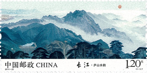 《长江》邮票以袁运甫先生国画长卷《长江万里图》为蓝本,以九图连票形式相衔展现长江万里奔腾的雄姿和气概。青藏高原各拉丹东雪山深处,雪水滴出了第一缕波涛。云南丽江石鼓镇近旁,江流逆转,惊天动地,亮出“长江第一湾”的雄浑。大江同环,毕竟东去。长江和嘉陵江相拥环抱山城重庆——这座在抗战中浴火重生,重为战略要地的中国西部唯一直辖市。进瞿塘峡口,迈出三峡第一步,巫峡十二峰接踵而来,一展神女峰仙姿。两陵峡险滩密布、悬崖飞瀑。