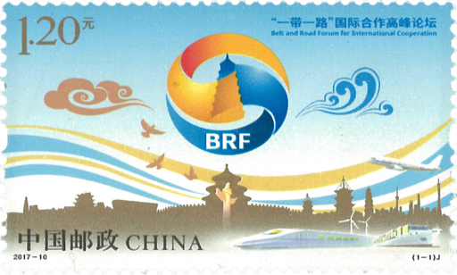 “一带一路”国际合作高峰论坛,于2017年5月14日至15日在中国北京举行,论坛主要活动包括开幕式、领导人圆桌峰会高级别会议三部分。中国国家主席习近平出席高峰论坛开幕式,发表了题为《携手推进“一带一路”建设》的主旨演讲,并主持了领导人圆桌峰会。峰会论坛有29个国家的元首和政府首脑,联合国秘书长、红十字国际委员会主席等重要国际组织负责人以及130多个国家和70多个国际组织的约1500名各界贵宾出席。高峰论坛是“一带一路”提出了3年多来最高规格的论坛活动,是2017年中国重要的主场外交活动,对推动国际和地区合作具有重要意义。“一带一路”国际合作高峰论坛的目的是全面总结“一带一路”建设的积极进展,展现重要早期收获成果,进一步凝聚合作共识,巩固良好的合作态势;共商下一阶段重要合作举措,进一步推动各方加强发展战略对接,深化伙伴关系,实现联动发展;在推进中国经济社会发展和结构调整的同时,推动国际合作,实现合作共赢。为纪念此次高峰论坛,中国邮政发行纪念邮票一套1枚。邮票画面中水纹元素代表了财富和海上丝路,祥云代表了陆上丝绸之路,体现了水利万物和包容、圆融的思想,表达了“加强国际合作,共建一带一路,实现共赢发展”的会议主题。其他元素反映了中国科技发展的成就,表现了联通中外的桥梁和纽带,阐述了此次论坛的“五通”主线,体现了中国与“一带一路”沿线国家一道携手共建、实现和平,发展与繁荣的共同愿景。
