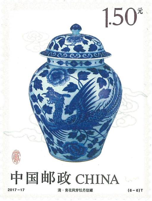 清·青花凤穿牡丹纹罐:国家一级文物。现藏于北京故宫博物院。罐高37.5厘米、口径15.5厘米、足径15.4厘米。