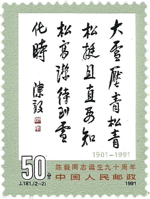 1901-1991大雪压青松青,松挺且直。要知松高洁,待到雪化时。陈毅