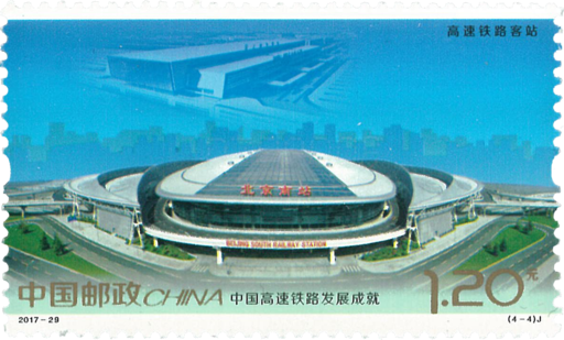 铁路是国民经济大动脉、关键基础设施和重大民生工程,是综合交通运输体系的骨干和主要交通方式之一。党的十八大以来,我国铁路建设取得了巨大成就,高铁已成为中国的另一张“国家名片”。我国高速铁路2017年已经建成了“四纵四横”高铁网,成功研制了具有完全自主知识产权、达到世界先进水平的中国标准动车组,经中央批准,命名为“复兴号”。过去五年,中国高铁新增运营里程1.2万公里,超过世界其他国家高铁运营里程的总和。中国高铁快速成网,运营里程从不足1万公里,延长到2.2万公里,四纵四横高铁网基本成型,成为世界上唯一高铁成网运行的国家。经过不断创新与实践,我国高铁技术几乎涉猎所有地质环境,创下最高运营时速、最低运营温度等世界纪录。邮票展现了中国高速铁路建设的宏伟盛况与中国高速铁路客站建设的辉煌成就,展现出中国研制的最新一代高速列车的精彩形象;体现出中国高铁雄厚的科学技术基础、反映出中国高铁桥梁技术的新高度;展示了中国高速动车组的独特风采。