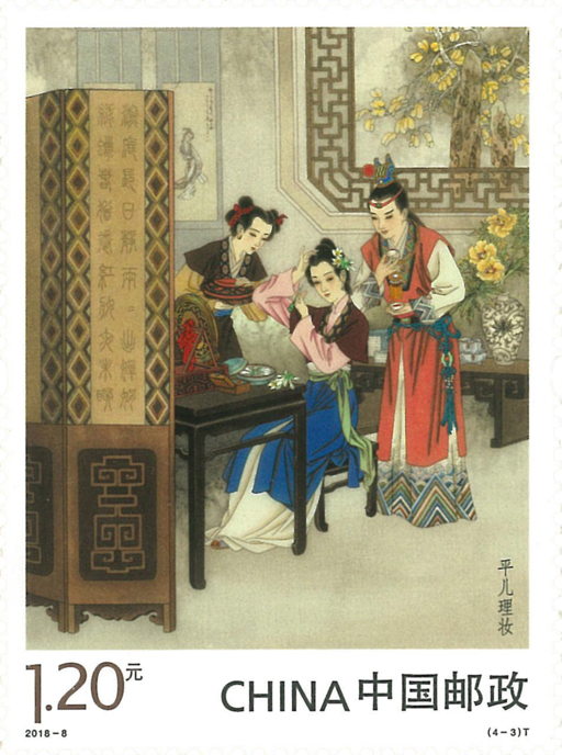“平儿理妆”见第44回。凤姐泼醋,平儿受辱。宝玉又替赔不是,又亲为其簪花洗帕。“平儿理妆”一段,尽写宝玉对女性的痴情体贴和殷勤爱护。
