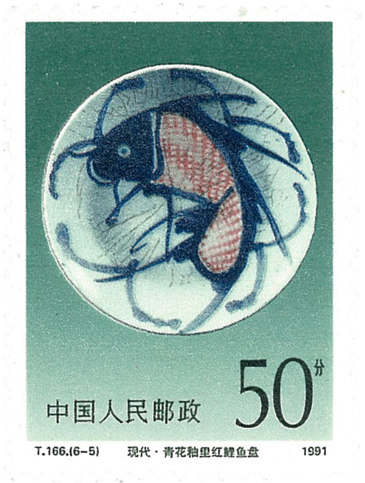 名称:现代.青花釉里红鲤鱼盘