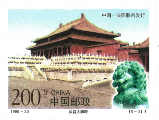 中国的故宫和法国的卢浮宫,分别位于两国首都北京和巴黎,均为世界著名的王宫建筑。二者作为古代建筑艺术巅峰,分别代表了东西方两种不同的文化。此套邮票为中法两国联合发行。