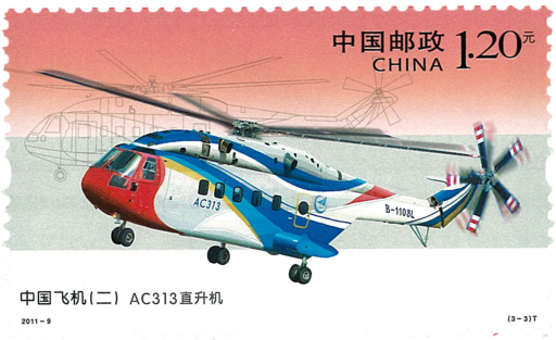 2011年是新中国航空工业建立60周年。邮票展现了中国航空工业自主创新的部分最新成果,是60年辉煌成就的缩影。歼-10歼击机是全天候超音速多用途战斗机,其研制成功实现了我国战机从第二代到第三代的跨越。目前,歼-10已成为我军在役的主力机种。飞豹歼击轰炸机是重型全天候超音速中、远程歼轰机,是目前我军载弹量最大、挂载武器种类最全的主力机种之一。歼-10飞机和飞豹飞机都曾获国家科技进步奖特等奖。AC313直升机是我国首次自主研制的大型民用直升机,整机性能达到国际第三代直升机先进水平。