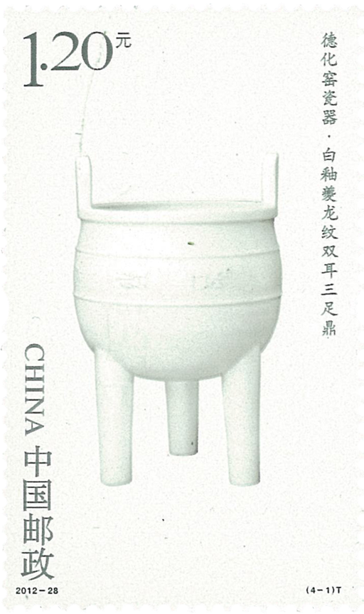 白釉象耳弦纹尊和白釉夔龙纹双耳三足鼎,造型古雅,胎质致密,釉层莹亮,装饰纹样优雅大方,是德化窑高档艺术陈设瓷的优秀代表。