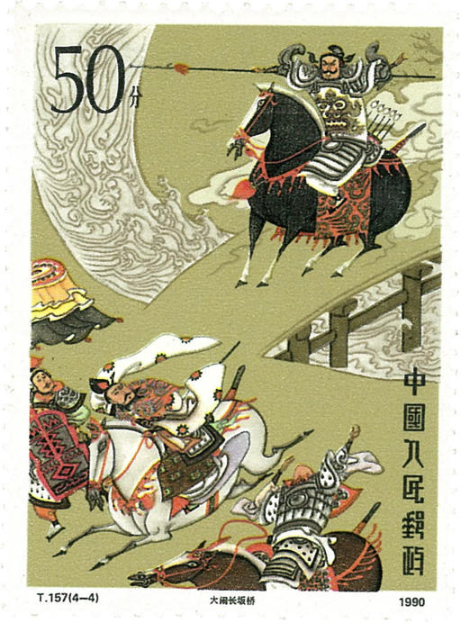 [大闹长坂桥]取自《三国演义>第四十二回“张翼德大闹长坂桥刘豫州败走汉津口”。曹操率众将追杀刘备,张飞怒目横眉立马桥上,曹军见状向后移动阵脚,张飞怒喝:“战又不战,退又不退,却是何故?”此声惊天动地,遏行云,回流水,夏侯杰肝胆碎裂,曹军四散溃逃,弃枪丢盔不计其数。有诗赞此壮举:长板桥头杀气生,横枪立马眼圆睁,一声好似轰雷震,独退曹家百万兵。
