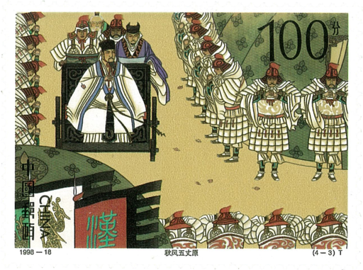 [秋风五丈原]取自《三国演义》第一百零三回“上方谷司马受困五丈原诸葛禳星”。孔明率军屯于五丈原,因日夜操劳,精力不振。一日,惊闻东吴攻魏失败,便晕了过去。中秋夜,孔明扶病出帐,仰观天象,深感大势不妙,遂设香花祭物;大小灯及本命灯于帐内外,每日在帐中祈禳,已过六夜,忽听寨外呐喊,魏延飞身入帐报告:“魏兵已到!”由于步急,竟将主灯扑灭。孔明弃剑叹道:“死生有命,不可得而禳也!”遂对撤退作了周密安排。不久便病逝于军中。