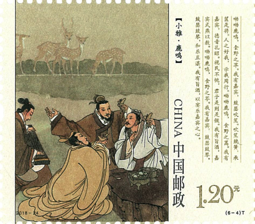 呦呦鹿鸣,食野之苹。我有嘉宾,鼓瑟吹笙。吹笙鼓簧,承筐是将。人之好我,示我周行。 呦呦鹿鸣,食野之蒿。我有嘉宾,德音孔昭。视民不恌,君子是则是效。我有旨酒,嘉宾式燕以敖。 呦呦鹿鸣,食野之芩。我有嘉宾,鼓瑟鼓琴。鼓瑟鼓琴,和乐且湛。我有旨酒,以燕乐嘉宾之心。