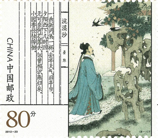 一曲新词酒一杯,去年天气旧亭台。夕阳西下几时回? 无可奈何花落去,似曾相识燕归来。小园香径独徘徊。