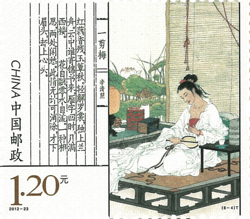 红藕香残玉簟秋,轻解罗裳,独上兰舟。云中谁寄锦书来?雁字回时,月满西楼。花自飘零水自流,一种相思,两处闲愁。此情无计可消除,才下眉头,却上心头。