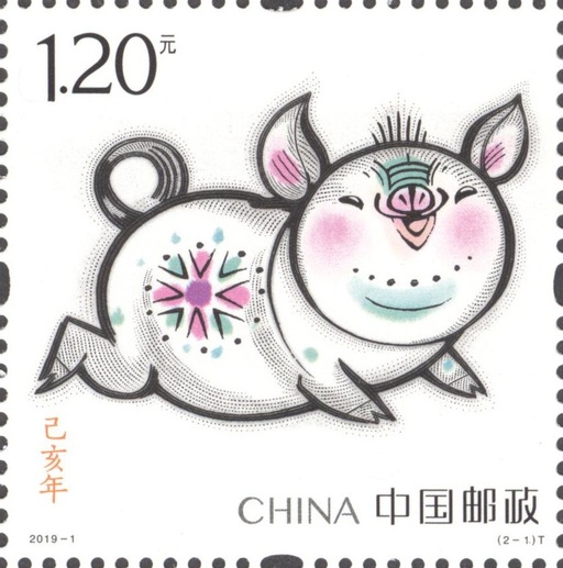 中国邮政定于2019年1月5日发行《己亥年》特种邮票1套2枚,图案名称分别为:肥猪旺福、五福齐聚,全套邮票面值2.40元。另发行小本票1本,售价12元。