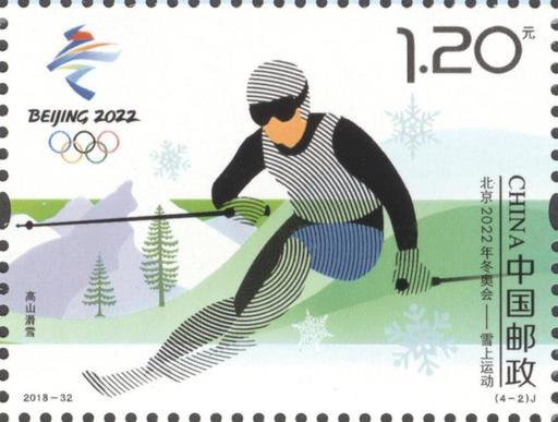 中国邮政定于2018年11月16日发行《北京2022年冬奥会——雪上运动》纪念邮票1套4枚,邮票图案名称分别为:越野滑雪、高山滑雪、冬季两项、自由式滑雪,全套邮票面值为4.80元。