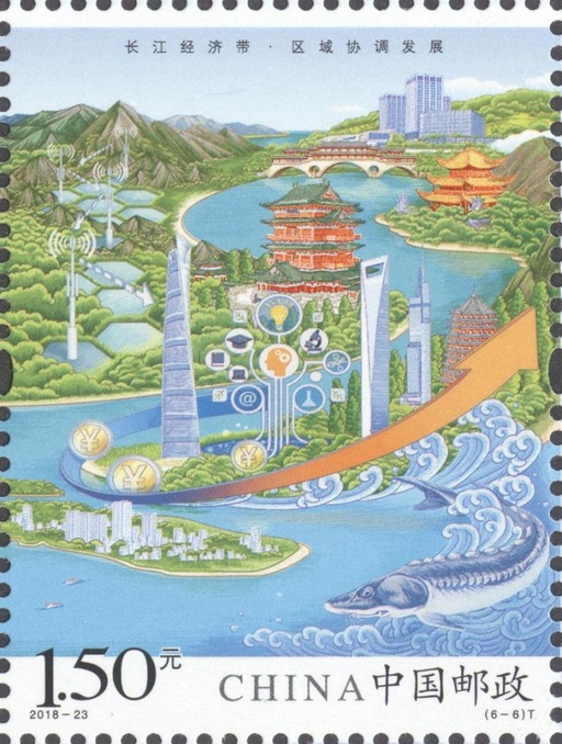 中国邮政定于2018年8月26日发行《长江经济带》特种邮票1套6枚,小全张1枚。邮票图案名称分别为:共抓大保护、综合立体交通走廊、产业转型升级、新型城镇化、开放新格局、区域协调发展,全套邮票面值7.80元,小全张售价11.70元。