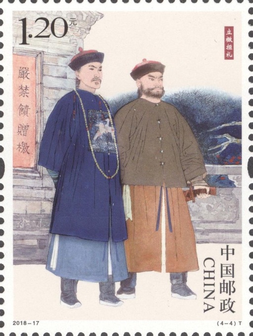 邮票选取中国古代从春秋时期到清代4个广为流传的古人居官正直,廉洁自律的故事。