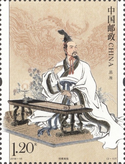 千百年来,屈原的精神与人格始终感召着中华儿女。中国民间端午节包粽子、赛龙舟的习俗就源于人们对屈原的纪念。1953年,屈原被世界和平理事会确定为当年纪念的世界四大文化名人之一,中国邮政为此发行了《世界文化名人》纪念邮票1套。2009年,以纪念屈原为核心内容的中国端午节及其传说被联合国教科文组织列入《人类非物质文化遗产代表作名录》。