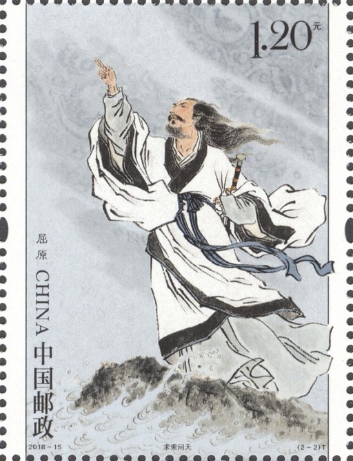 千百年来,屈原的精神与人格始终感召着中华儿女。中国民间端午节包粽子、赛龙舟的习俗就源于人们对屈原的纪念。1953年,屈原被世界和平理事会确定为当年纪念的世界四大文化名人之一,中国邮政为此发行了《世界文化名人》纪念邮票1套。2009年,以纪念屈原为核心内容的中国端午节及其传说被联合国教科文组织列入《人类非物质文化遗产代表作名录》。