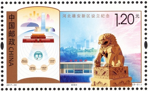 该套邮票犹如徐徐展开的画卷。第一图新起点,卷首为2017年4月2日刊载中共中央、国务院关于设立河北雄安新区通知的《人民日报》,卷内则选取雄县牌楼、容城容和塔和安新白洋淀等景物,是对雄安新区设立时间和地点的现实纪录。第二图新使命,卷首选取北京天安门等代表首都功能的建筑元素和雄安新区发展要求的文字元素,卷内则选取新华门前的石狮、白洋淀高铁客站、未来雄安新区建设展望等形象元素,体现了雄安新区作为疏解北京非首都功能集中承载地的功能定位和在京津冀协同发展战略中的历史使命,昭示着在以习近平同志为核心的党中央坚强领导下,雄安新区发展的美好前景。