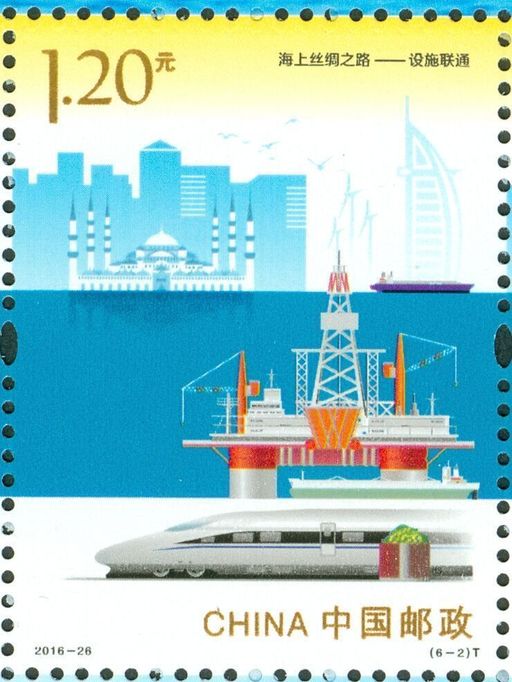 中国邮政定于2016年9月10日发行《海上丝绸之路》特种邮票1套6枚,图案内容分别为:政策沟通、设施联通、贸易畅通、资金融通、民心相通、海上交通,全套邮票面值7.80元,另发行小全张1枚,售价11.70元。