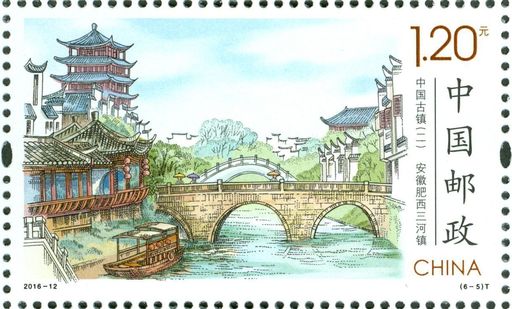 中国古镇系列邮票第二组选取溱潼镇等六座历史悠久、风景秀美的历史文化名镇。溱潼镇地处江苏中部里下河地区,这里有著名的“溱湖八景”,充满浓郁的水乡风情。七里坪镇位于鄂豫两省交界处的大别山南麓,是国家红色旅游名镇。青岩镇坐落在黔中腹地贵阳花溪的秀美山水间,为古时军事重镇。朱家角镇位于上海西郊青浦区的淀山湖畔,素有“小上海”的美称。三河镇地处安徽合肥市肥西县南端,尤以镇中“八古”景观最为著名。黄姚古镇在广西贺州市昭平县东北,古镇建筑颇具岭南风格。