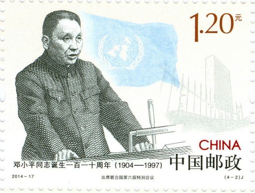 《邓小平同志诞生一百一十周年》纪念邮票的核心创意是紧密围绕邓小平同志在不同时期的形象特点、时代特征以及典型事件进行设计。设计中统一采用写实的人物素描方式,选择了邓小平在领导百色起义、出席联合国第六届特别大会、在中国共产党第十二次全国代表大会上以及南方谈话四个时期最具代表性的形象为票面主体,背景则融入了与同一事件相对应的场景以及具有代表性的旗帜等元素来分别衬托四个不同的主题内容。在设计中极力通过主体人物的服装、年龄、表情等元素及相关事件的场景诠释四个不同时代,让观众在票面中能够非常容易地区分时代特征,理解伟人的卓著功勋。本套邮票以黑白素描与背景的暖色调形成对比,既突出了主题、寄托了人们对邓小平同志的无尽思念,又能衬托邮票的主题。