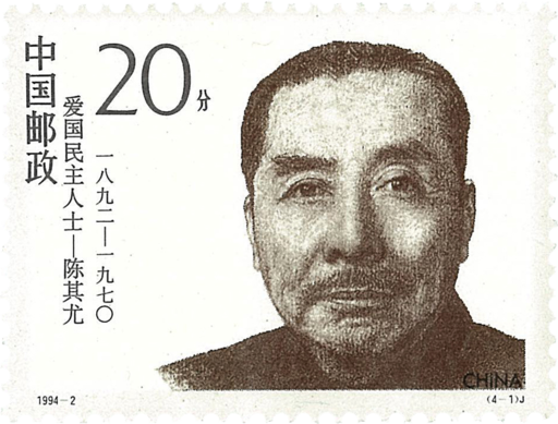 陈其尤(1892—1970)广东海丰人。早年加入同盟会。曾任中国致公党主席,建国后历任全国人大常委、全国政协常委等职。