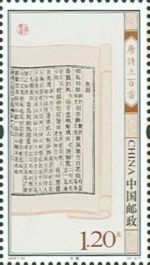 此套邮票采用雕刻缩微文字将唐诗三百首全文印制在邮票周边,借助点读笔点触,可欣赏到唐诗三百首朗读,是首套多媒体邮票。(音源提供:方明、洪涛、王文华;中华商务贸易公司)